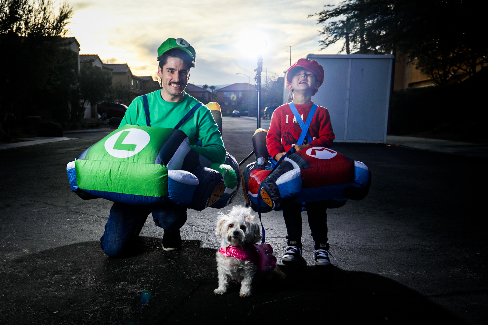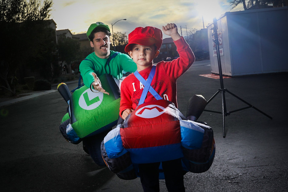 For Halloween, I don’t believe in limiting myself, or my son, to one costume. I like to save the best for Halloween night, but I always like to have other options for other celebrations. From trunk or treats to parades and pre-Halloween parties, I recommend having a different outfit for each event. Once you’ve decided on that, it makes it even that more fun to do costume changes during your shoot. For our family, we did a mixture of Marvel, Wrestling, The Office, and Mario Kart.